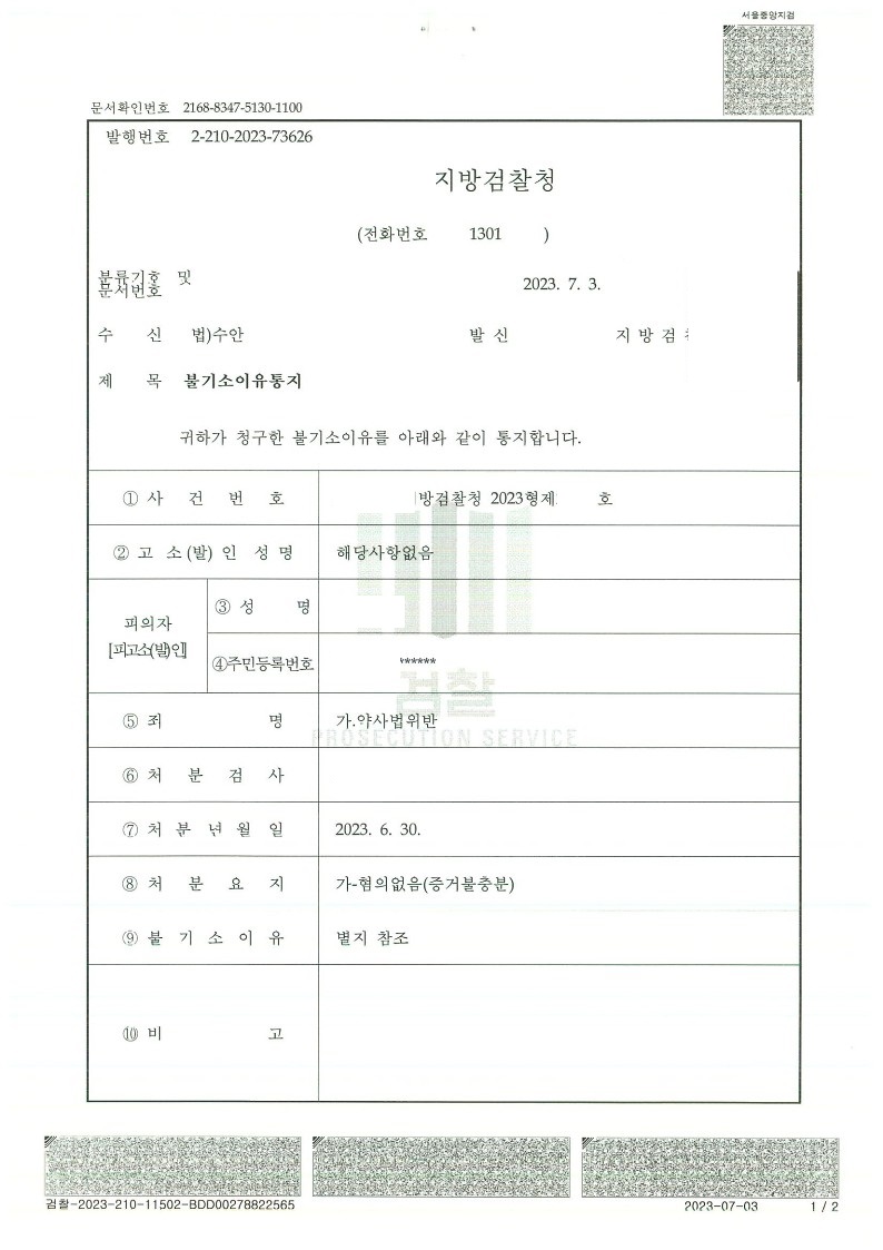 종국적으로는 모두 무혐의 처분을 받을 수 있었습니다.