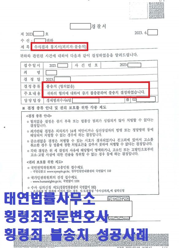 <횡령죄 불송치 결정에 성공하다!>