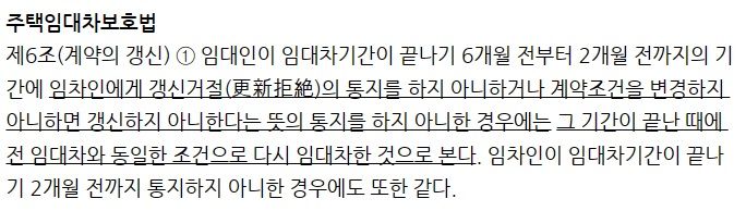 주택임대차보호법은 “임대차기간이 끝나기 6개월 전부터 2개월 전까지의 기간에” 갱신거절의 통지를 할 것을 규정하고 있습니다. 그렇다면 임대차계약 종료일로부터 2개월 전에 하면 될까요? 이와 관련하여 반드시 주의할 사항이 있습니다.