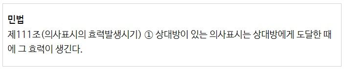 그런데 전화통화, 문자메시지와 달리 내용증명 방법에 의한 의사표시는 즉시 상대방에게 도달하는 것이 아니라 수 일의 시간이 소요되므로, 계약 종료일로부터 2개월 전에 날짜를 맞추어 내용증명을 보낼 것이 아니라, 여유있게 발송하는 것이 안전합니다.