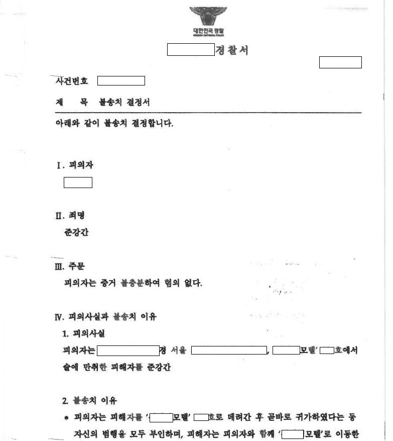 준강간으로 입건된 상황에서 경찰 불송치 결정을 받은 사례입니다.