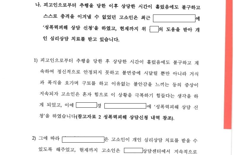 [고소대리인이 실제 제출한 의견서 중 일부]