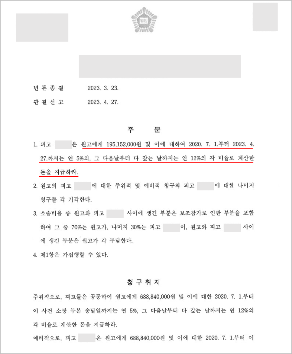 [민사 성공사례] 손해배상 청구 1억9천만원 인용