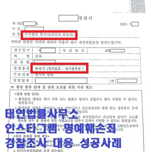 그렇기에 의뢰인은 인스타그램명예훼손죄 경찰조사에서 태연법률사무소의 수사 전략대로 일관성 있는 주장을 펼쳤고,
