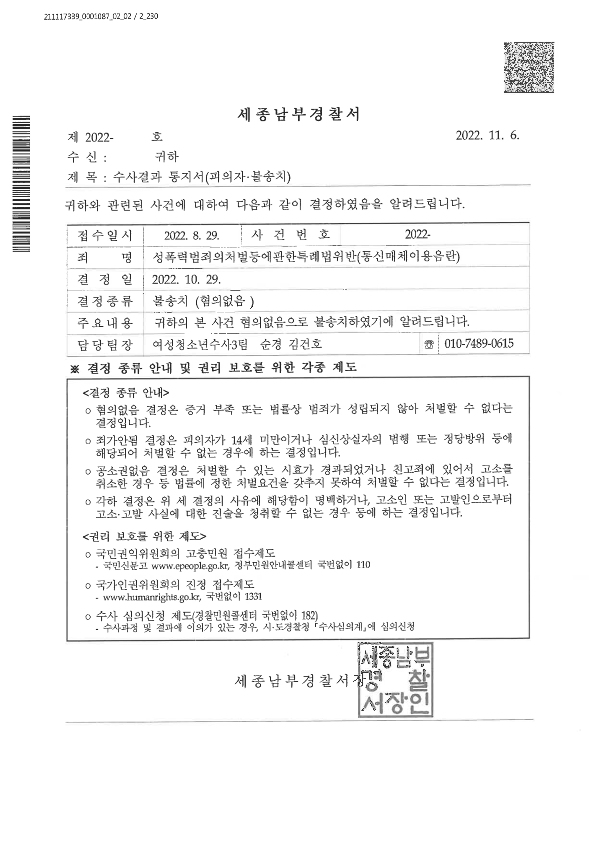 이 사건의 경우 경찰단계부터 선임하시어 적극 무혐의주장하여 훨씬 편하게 불송치처분을 받을 수 있었습니다.