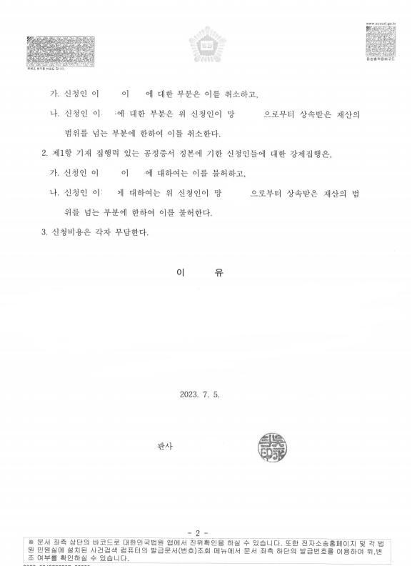 아래에서는 공정증서에 대한 승계집행문 부여에 대한 이의신청 및 강제집행 정지신청 인용 사례에 대하여 말씀드리겠습니다.