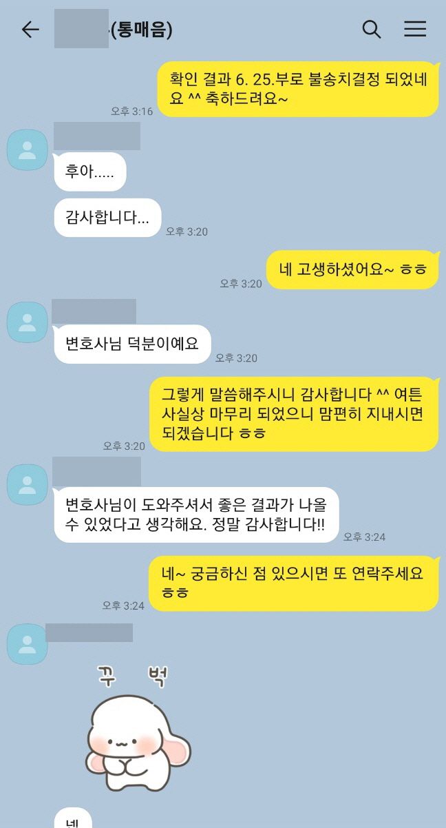 다행스럽게 주장이 받아들여져 '불송치결정(혐의없음)'으로 사건을 종결시켜드렸습니다.