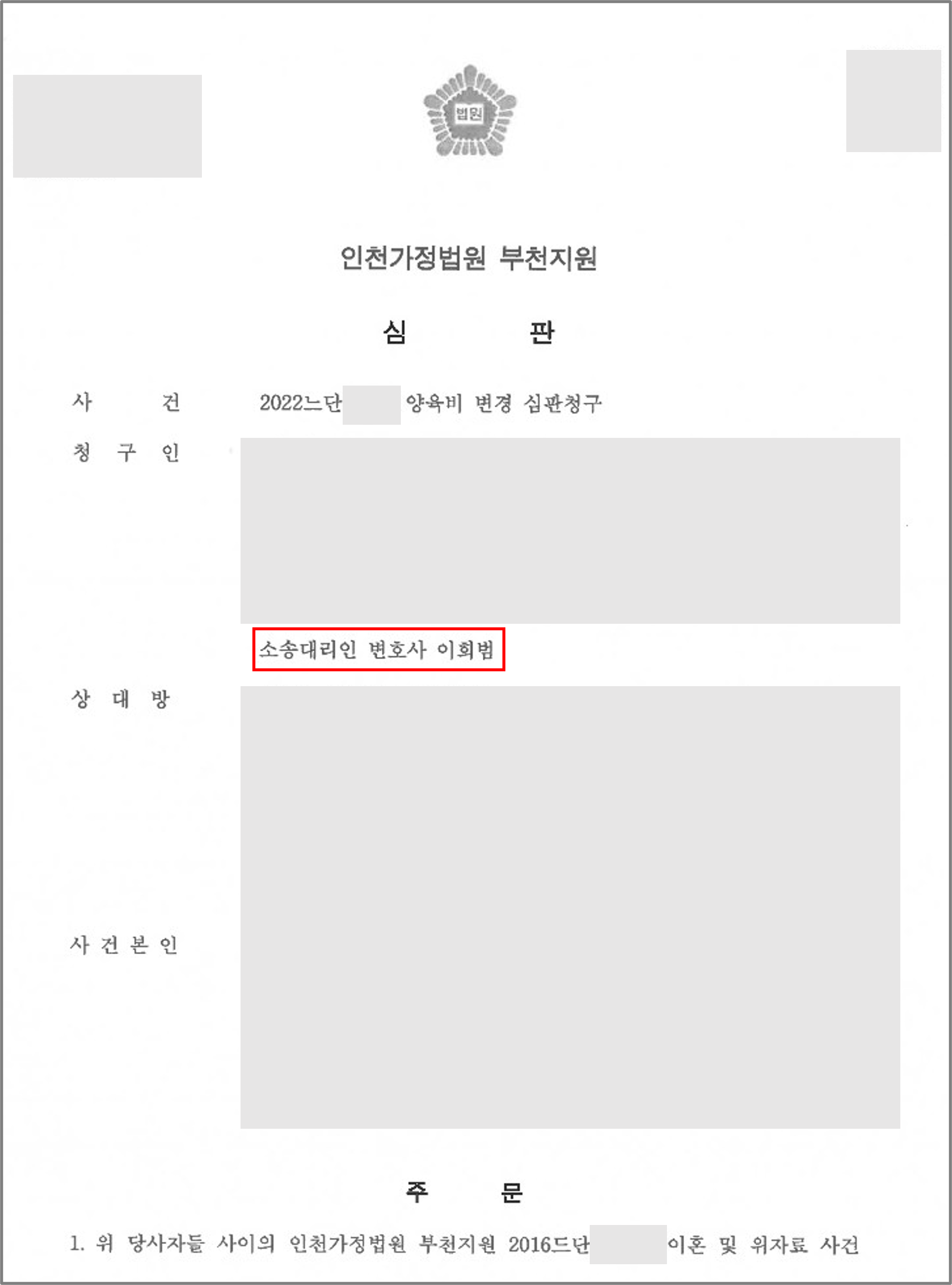 [가사 성공 사례] 양육비 변경 심판 청구 승소
