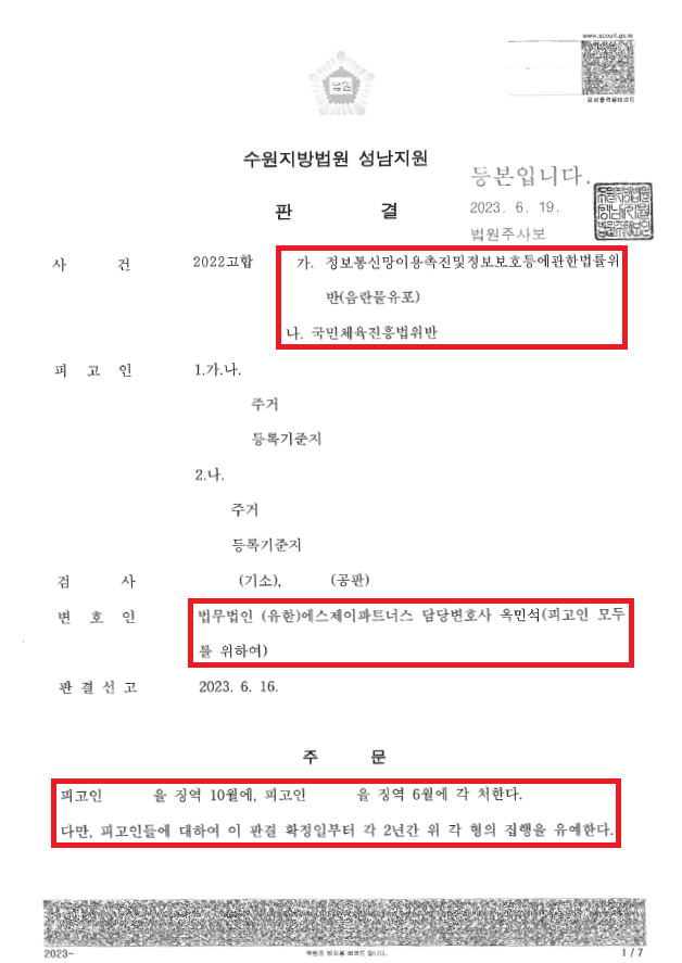 ![[국민체육진흥법위반등] 음란물을 이용하여 토토 사이트를 홍보](/_next/image?url=https%3A%2F%2Fd2ai3ajp99ywjy.cloudfront.net%2Fuploads%2Ftitleimage%2Foriginal%2F5b7bb6c755ed6477716e1471-original.jpg&w=3840&q=75)