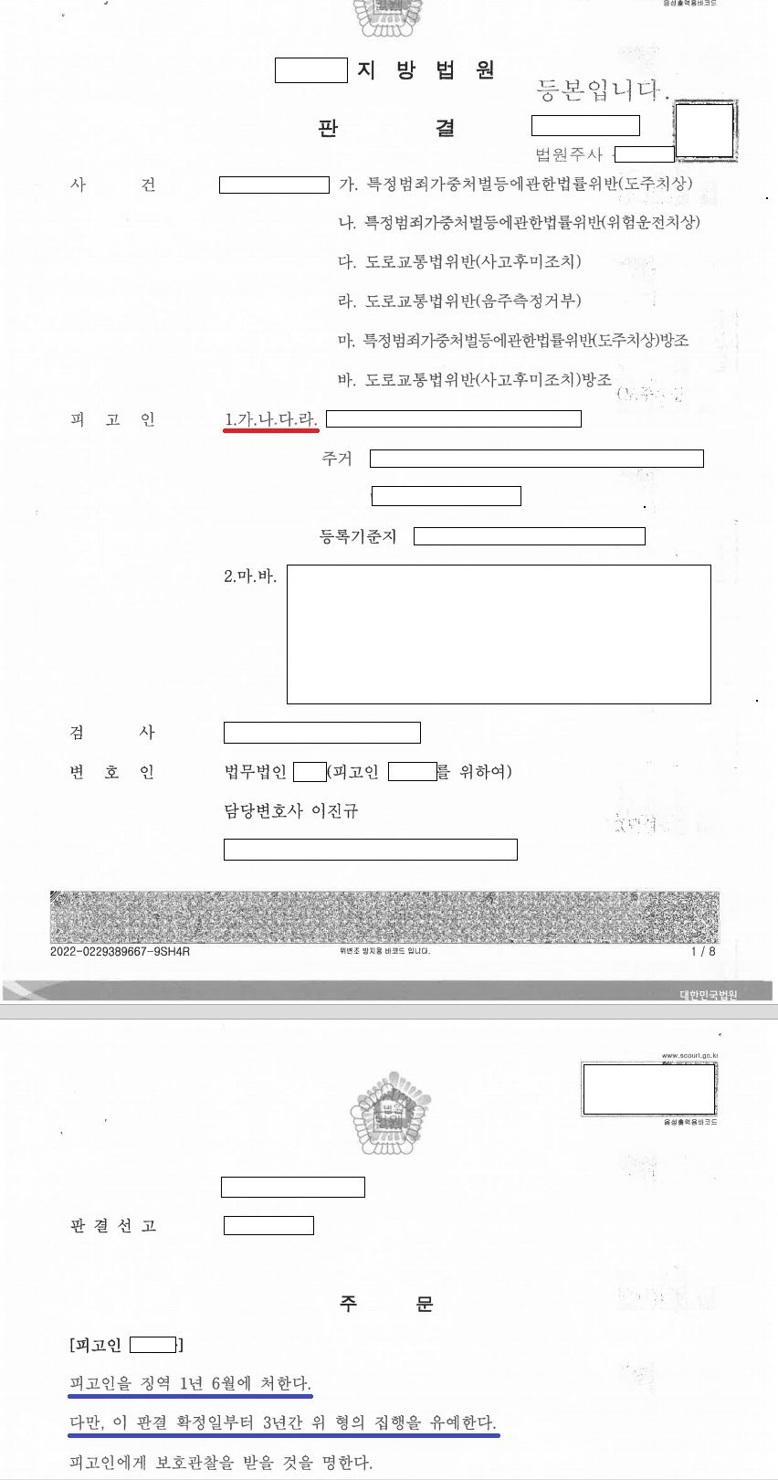 특정범죄가중처벌등에관한법률위반(도주치상), 특정범죄가중처벌등에관한법률위반(위험운전치상), 도로교통법위반(사고후미조치), 도로교통법위반(음주측정거부) 사건에서 음주운전 전력이 있음에도 불구하고 집행유예의 선처를 받은 사례입니다.