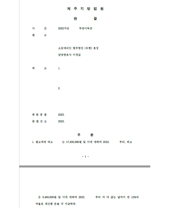 저는 즉각 입금 받은 자들을 피고로 하여 민사소송 부당이득반환청구소송을 제기하였고 법원은 저희의 주장을 받아들여 원고 승소 판결을 선고하여 의뢰인은 피해액을 반환받게 되었습니다.