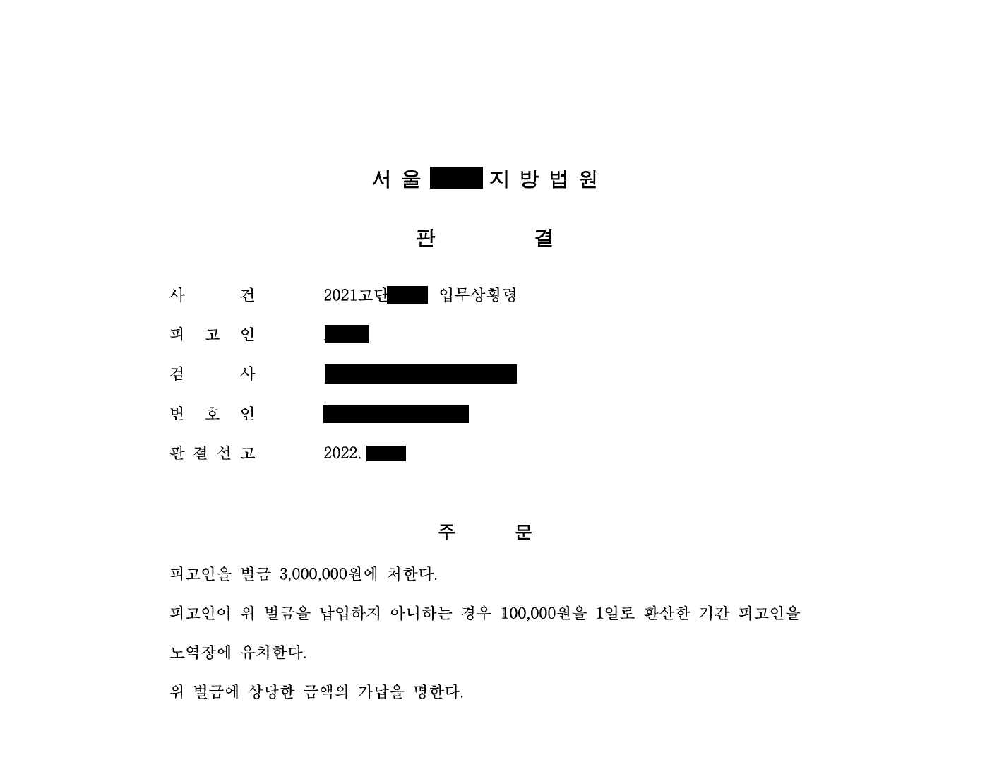 법원은 사업자에 대해 벌금 300만 원을 선고했습니다.