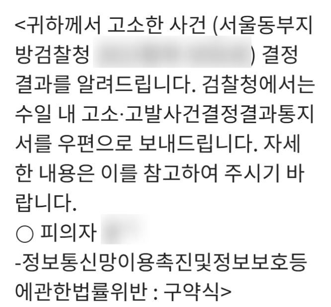 저희는 상대방을 정보통신망법위반으로 고소했고, 상대방은 벌금형의 처벌을 받게 되었습니다.
