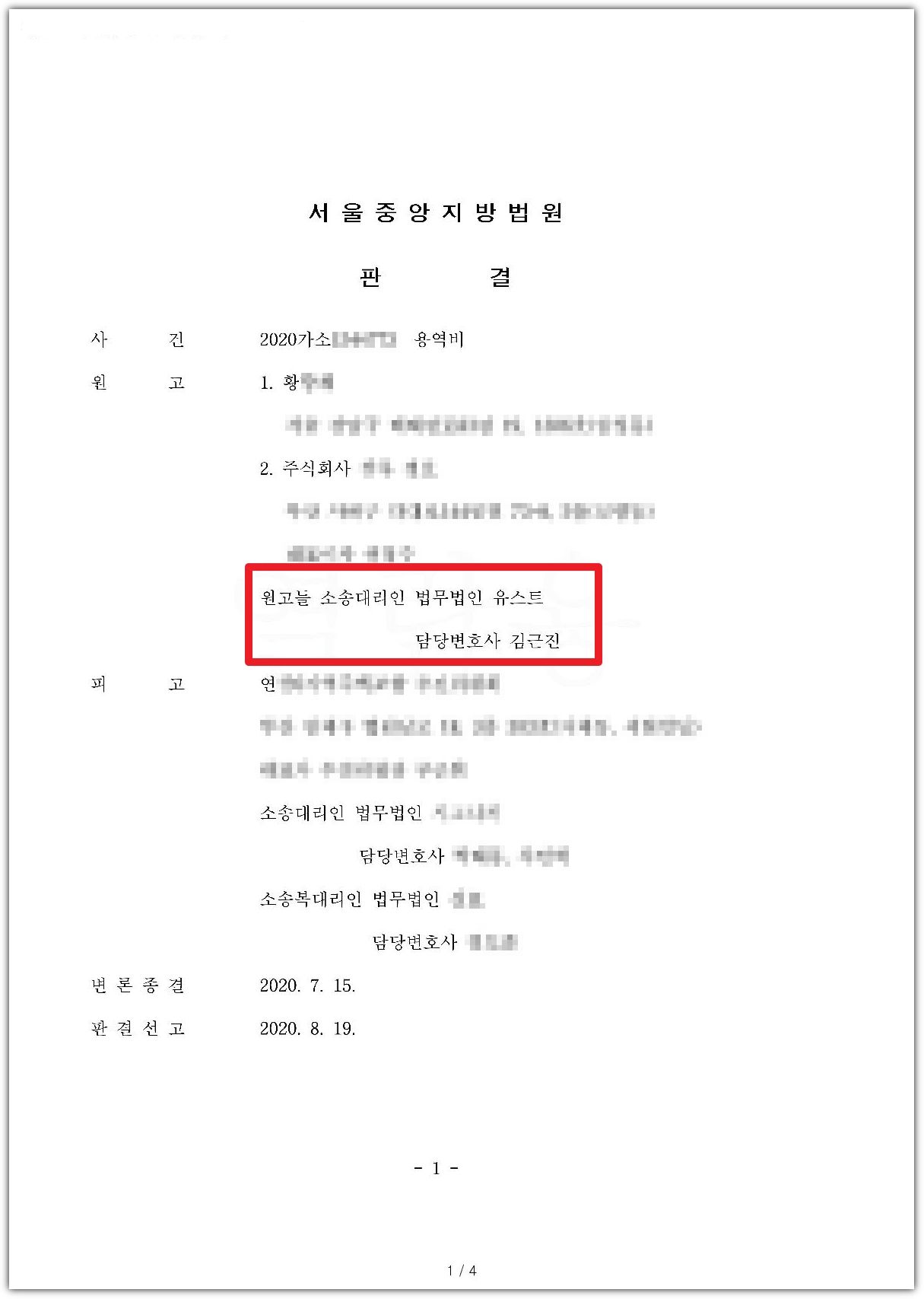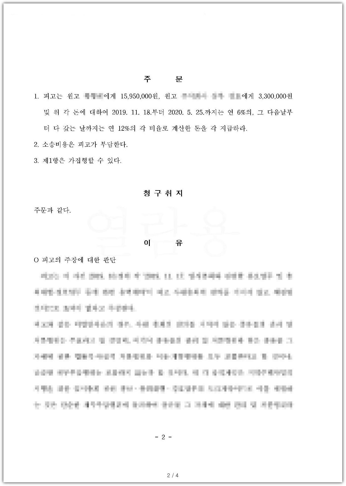 몇 차례의 재판 끝에, 원고들은 판결을 통하여 모두 자신들의 용역비를 지급받을 수 있었습니다.