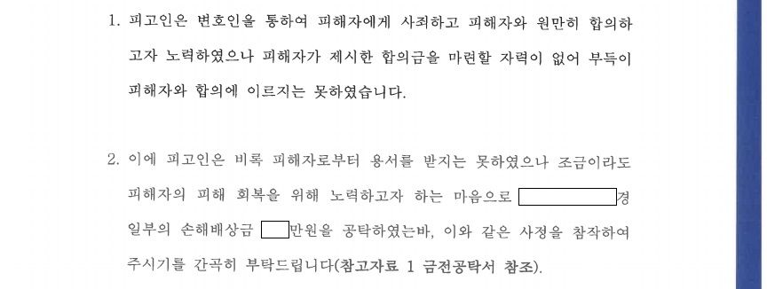 - 이와 같은 상황에서 저는 의뢰인분께 상황을 상세히 설명드리면서 마련하실 수 있는 최대한의 금원을 빠르게 만들어 주실 것을 요청드렸고, 이와 같이 준비된 금원으로 형사공탁을 진행함과 동시에 의뢰인분의 양형에 관한 사정들을 최대한 구체적으로 기재한 변호인 의견서를 작성하여 재판부에 선처를 호소하였습니다.