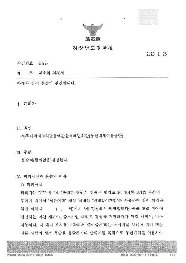 결론적으로 게임 통매음은 위 두가지 유형 모두 무혐의주장이 가능 합니다. 특히나 첫번째 성적 패드립 유형이 무혐의처분을 받기에 더욱 쉽고, 두번째 유형조차도 무혐의처분을 받는 것이 그리 어렵지 않습니다.