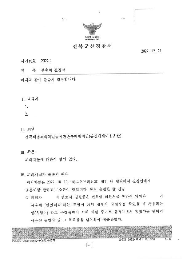 결국 게임 통매음은 위 두가지 유형 모두 무혐의주장이 가능 합니다. 특히나 첫번째 성적 패드립 유형이 무혐의처분을 받기에 더욱 쉽고, 두번째 유형조차도 무혐의처분을 받는 것이 그리 어렵지 않습니다.