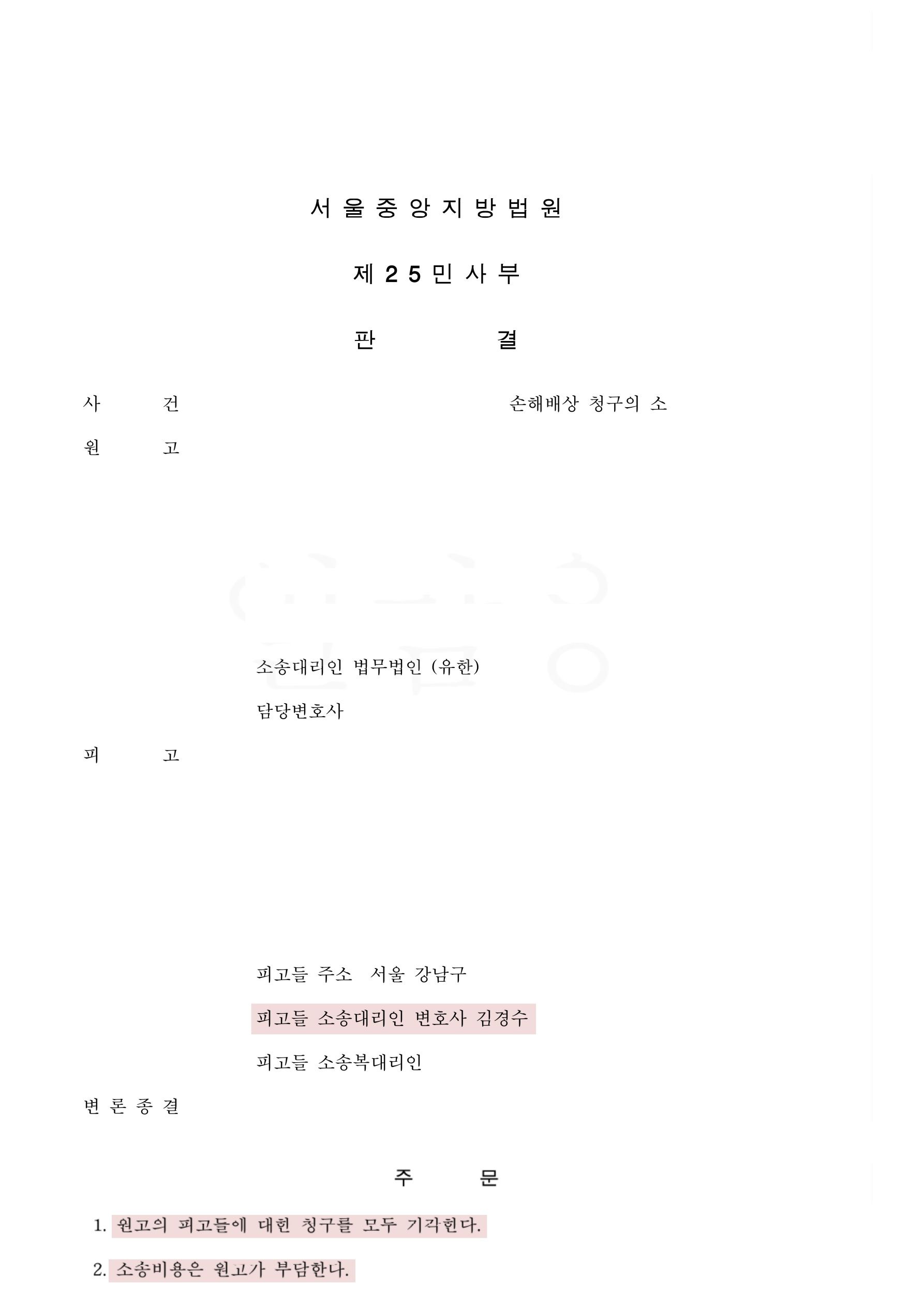 저희 법무법인 빛이 언론사(피고)를 대리하여 승소한 사건입니다.