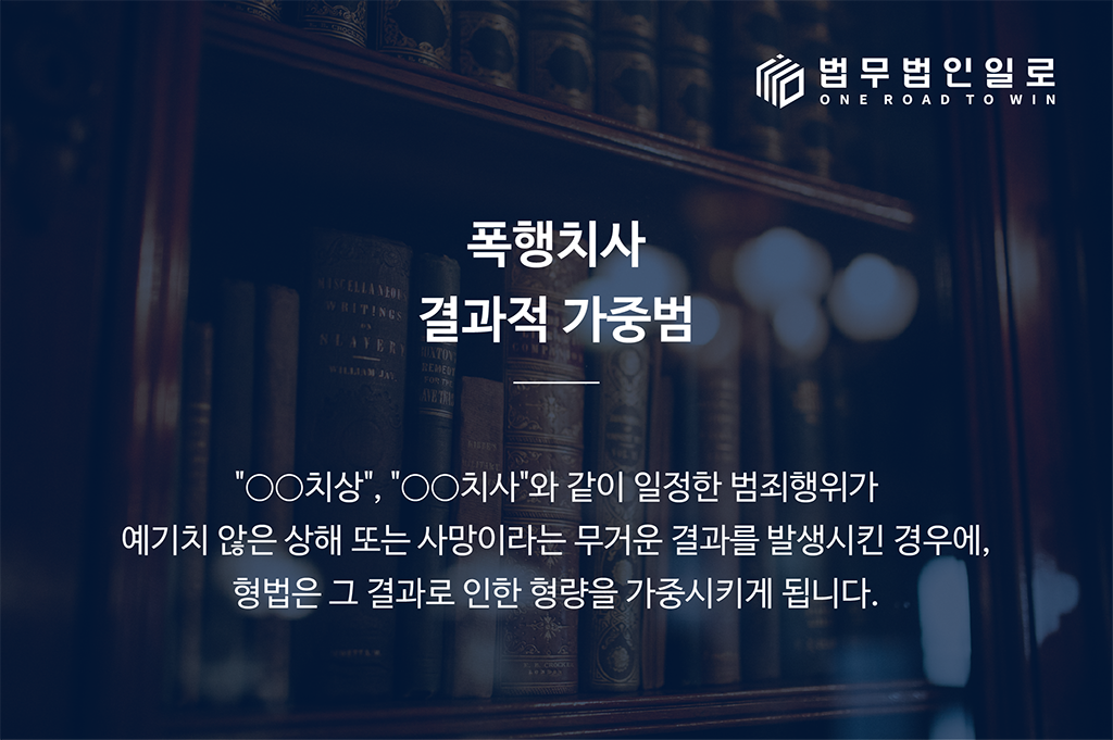 "○○치상", "○○치사"와 같이 일정한 범죄행위가 예기치 않은 상해 또는 사망이라는 무거운 결과를 발생시킨 경우에, 우리 형법은 그 결과로 인한 형량을 가중시키게 됩니다.