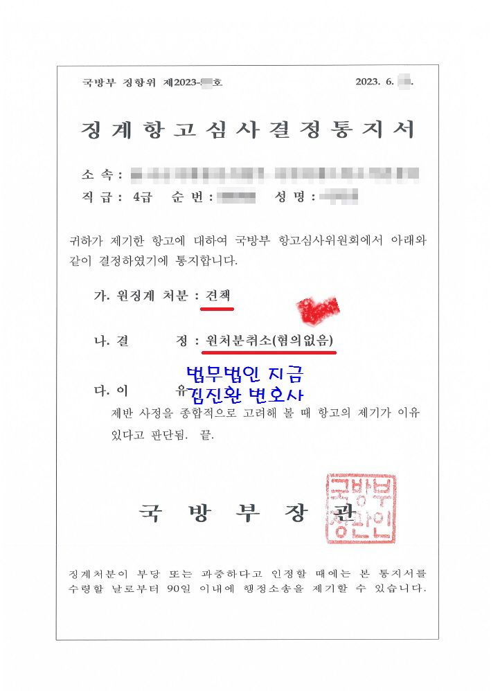 특히 의뢰인분은 이번 징계처분으로 훈장도 받지 못하고 유공자도 되지 못할 뻔했는데요 명예를 회복하시고 훈장도 받게 되시어 큰 보람을 느낀 사건이었습니다.