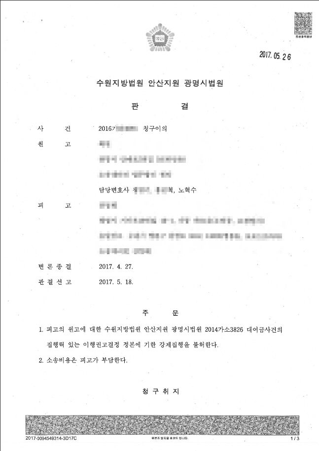 간단한 청구이의(실질은 대여금 사건)이었지만, 이것저것 생각하게 된 경험이었습니다.