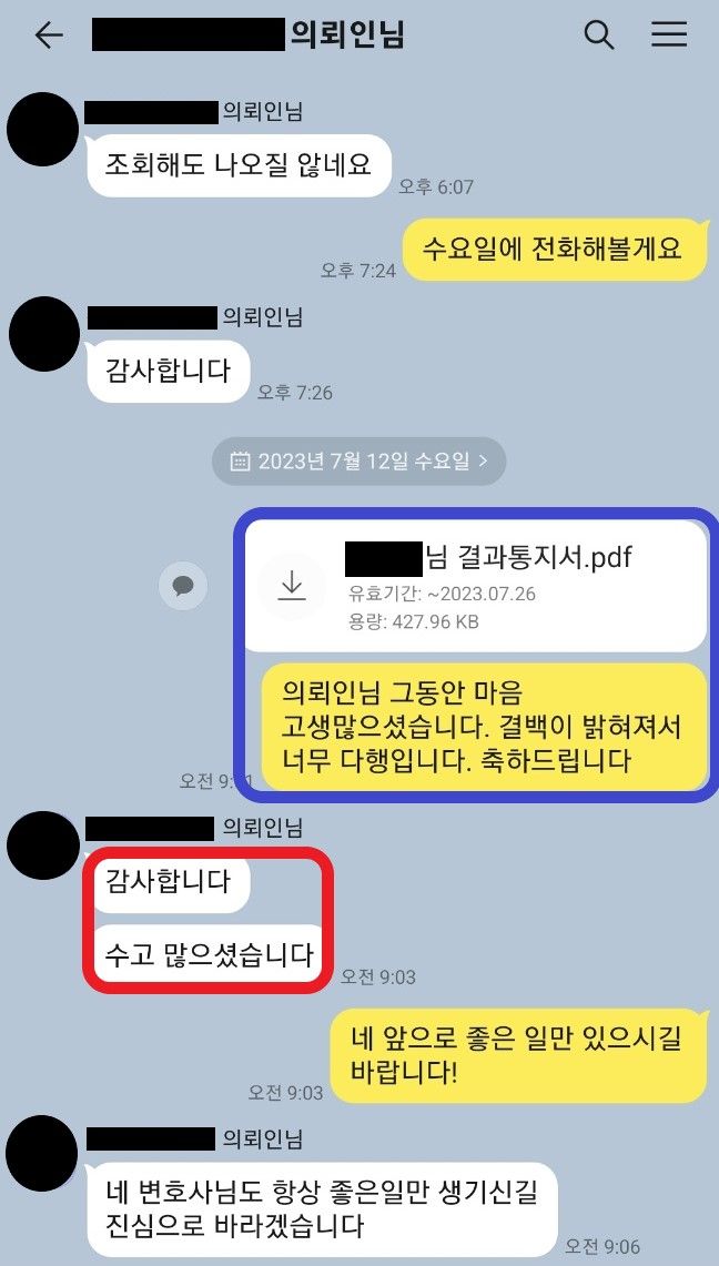 다행히도, A가 모든 자료를 잘 준비해주었고, 변호인이 적극 활용한 결과 아예 불송치되었습니다. 나머지 2499명의 남성은 송치되어 기소유예를 받거나, 벌금형에 처해졌을 것인바, A혼자 억울함을 밝힌 사례라고 할 것입니다.