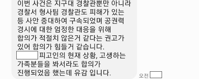 [피해 경찰관으로부터 받은 문자메시지 중 일부]