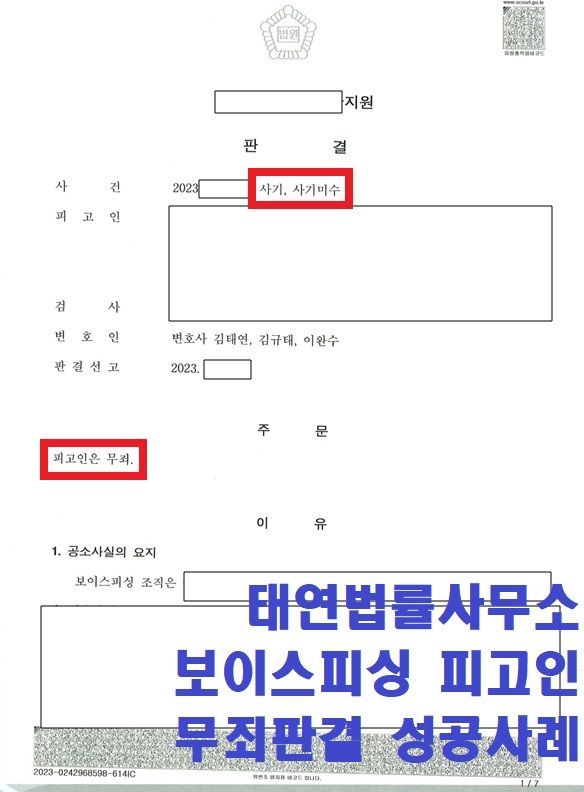 <성공사례 - 보이스피싱전문변호사, 보이스피싱 무죄판결을 받다.>