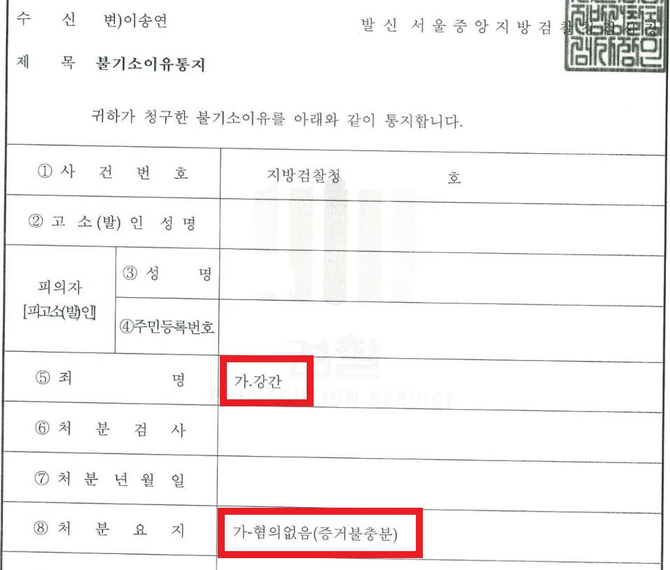 최종적으로 '혐의없음' 처분을 하였습니다.