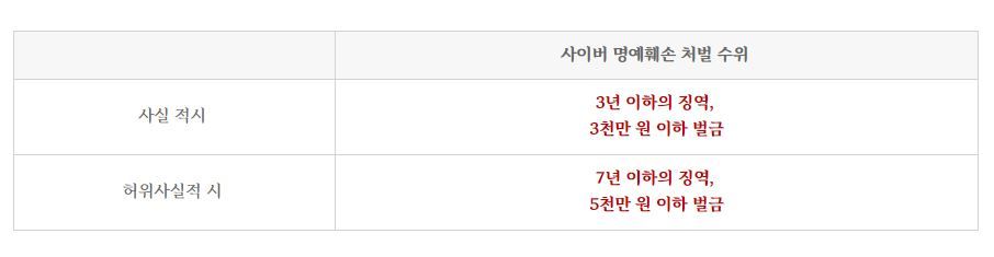 이는 허위사실을 발언하였는지 혹은 사실을 발언하였는지에 따라 처벌 수위에 있어 차이가 존재합니다.