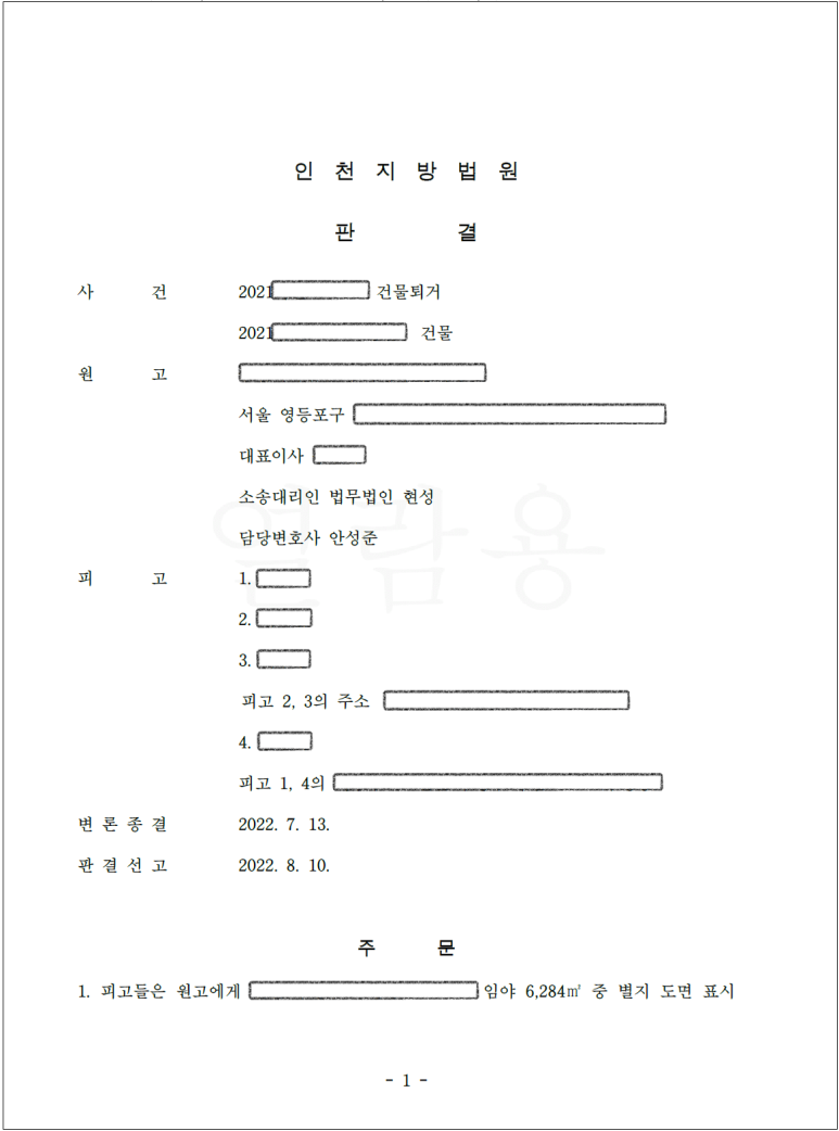 의뢰인인 원고의 전부 승소