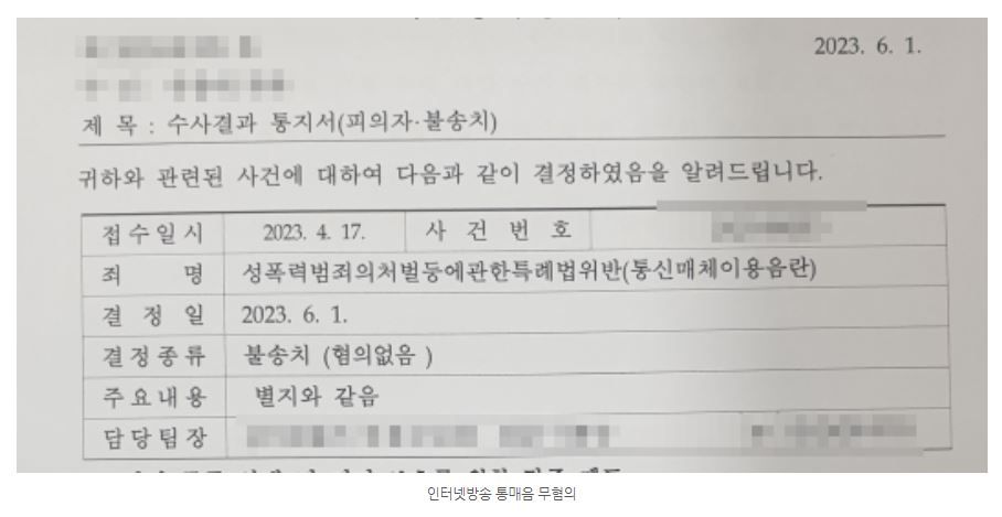 3. 최종 결과 - 인터넷방송 통매음 무혐의
