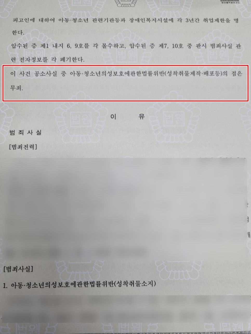 의뢰인이 기소된 범죄사실들 중 가장 중한 부분을 차지하고 있던 아청법 성착취물 제작, 배포 죄와 관련되었습니다.