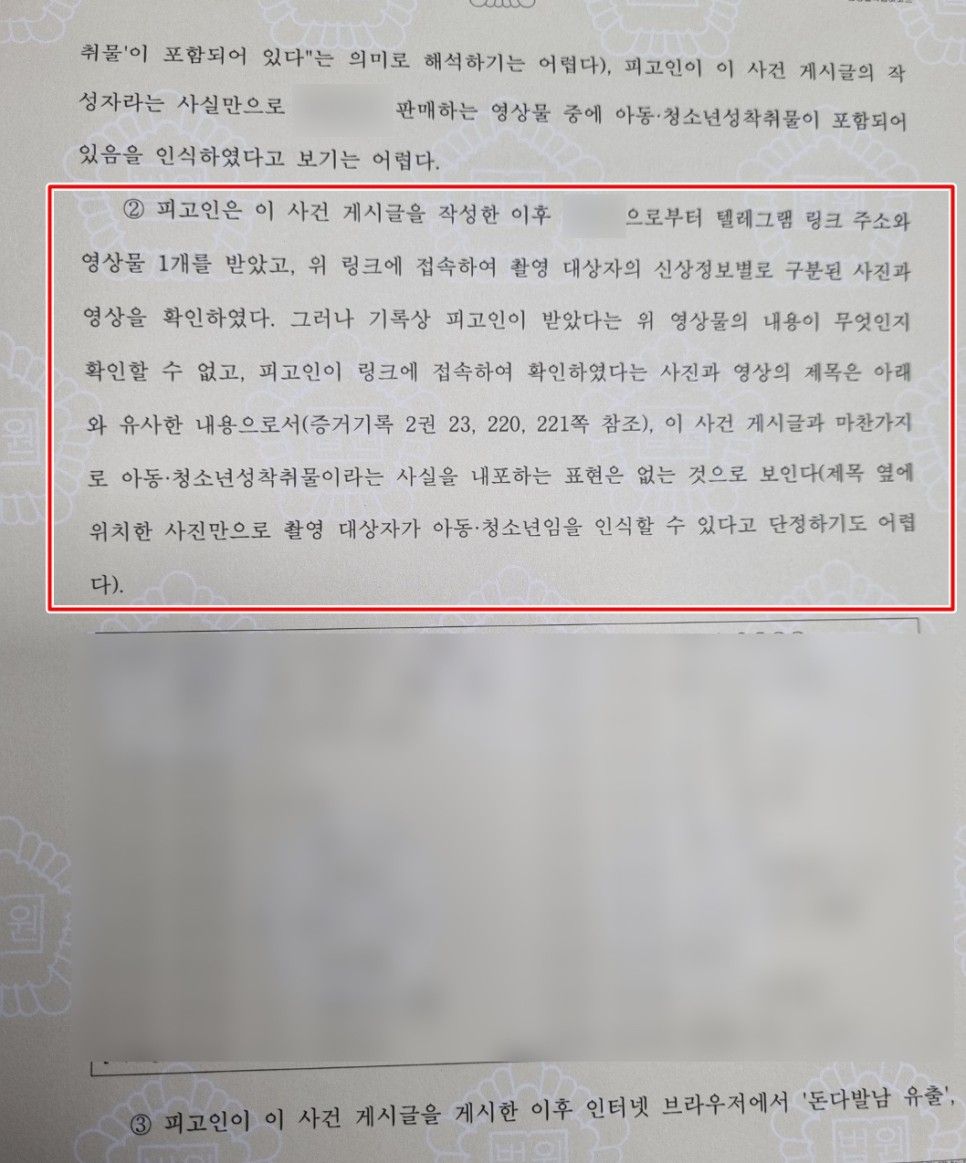변호인의견서의 주된 내용은 "다른 죄명들은 모두 혐의를 인정하고 자백하는 입장이지만, 가장 중한 죄명인 아청법 성착취물 제작, 배포 죄는 의뢰인에게 아동, 청소년 성착취물이었다는 사실을 인식하기 어려워 혐의를 부인한다"는 취지였습니다.