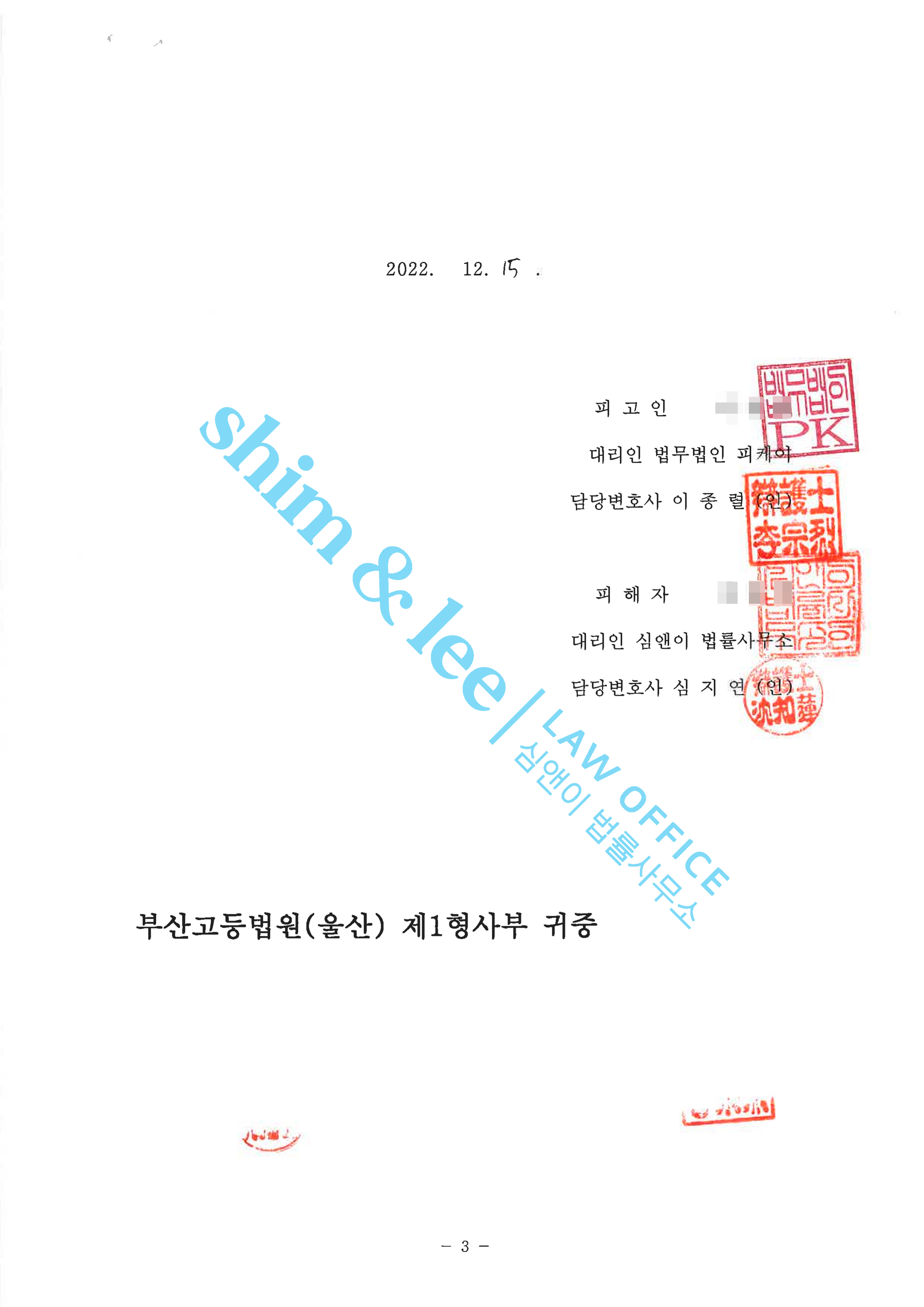 하지만 피해자는 가해자에게 제대로 된 합의 제안이나 사과를 받은 적이 전혀 없었기 때문에 이 부분을 바로잡을 필요가 있었습니다. 심앤이는 2심 첫 공판 전에 의견서를 작성해 가해자의 거짓된 주장과 그로 인한 피해자의 정신적 고통을 재판부에 알렸습니다.
