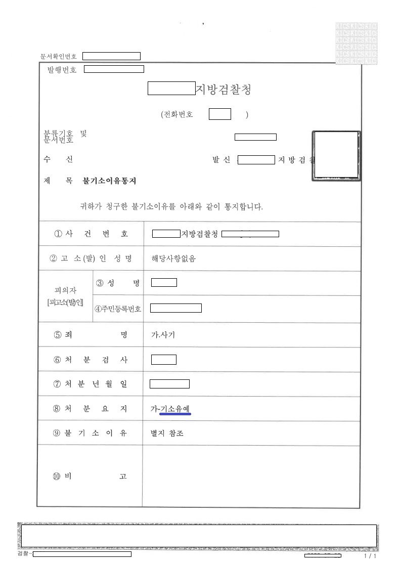 이 사건에서 담당 검사는 피의 사실 자체는 인정하면서도 피의자(의뢰인)에게 동종의 전력이 없는 점, 피의자(의뢰인)와 피해자 사이에 원만하게 합의가 이루어진 점 등을 참작하여 의뢰인에게 기소유예 처분을 하였습니다.