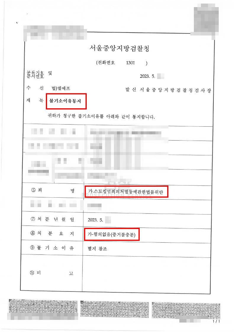 │LF는 의뢰인에게 스토킹 행위에 대한 고의성이 없었음을 변론하며 의뢰인이 한 행동이 법리적으로 스토킹 범죄에 해당하지 않음을 주장하였습니다.
