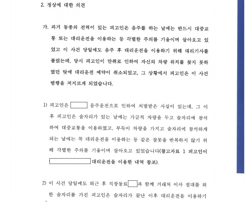 [변호인이 실제 제출한 의견서 중 일부]