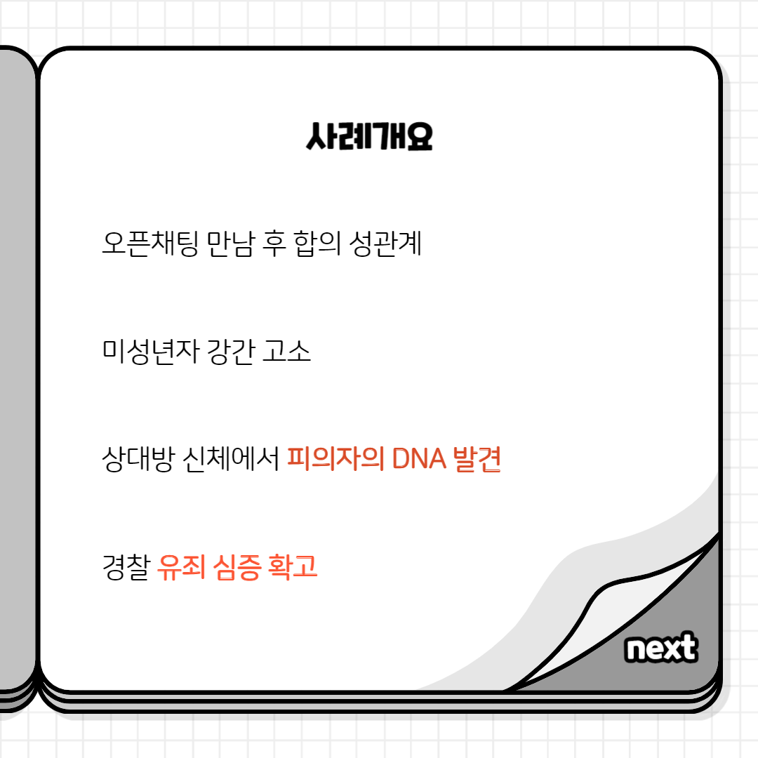 오늘은 오픈 채팅 만남을 가진 뒤 미성년자 간음으로 고소되어 수사받게 된 의뢰인을 변호하여 불송치(무혐의)를 이끌어낸 사례를 소개하고자 합니다.