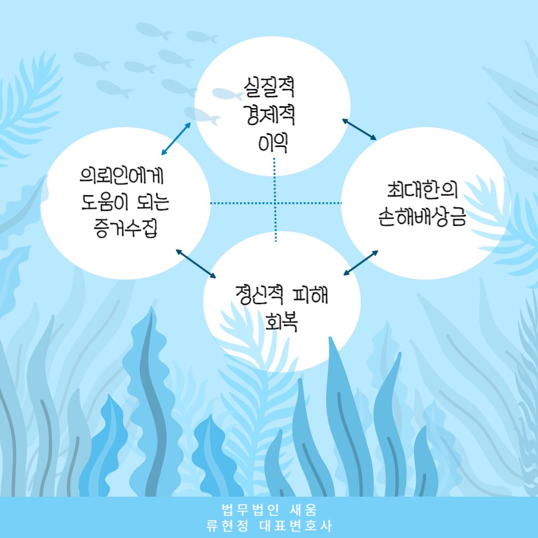 물론 상간자나 배우자를 상대로 망신을 주기 위해 소송을 하고 싶다고 하거나 상간자의 직장이나 주거지를 찾아가 소문을 내고 싶다고 하는 의뢰인도 있습니다만, 법적으로는 이렇게 행동하였다가는 공연히 처벌을 받게 될 가능성이 있습니다. 새움에서는 이혼소송이나 상간자소송에서 불리하게 작용할 가능성이 있는 행동을 최대한 줄이면서, 의뢰인에게 도움이 될 수 있는 증거를 수집하여 실질적이고 경제적인 이익을 드릴 수 있게 노력하고 있습니다.