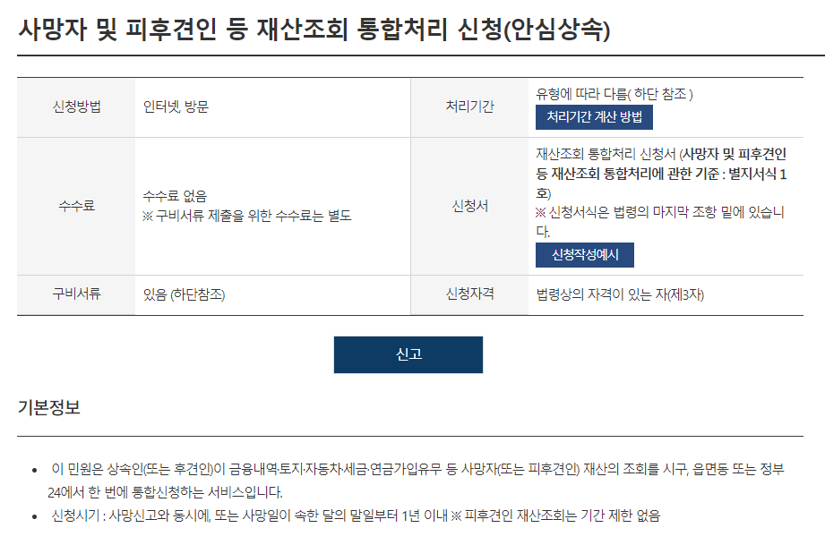 주민센터나 금융기관에 “안심상속원스톱 서비스”를 신청하면 현재 사망하신 부모님 명의로 된 부동산, 금융재산 등을 파악할 수 있습니다.