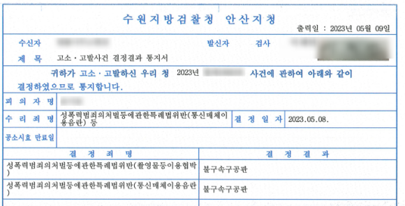 그 결과 가해자인 전 남자친구는 두 죄명으로 불구속 구공판을 받게 됐습니다.