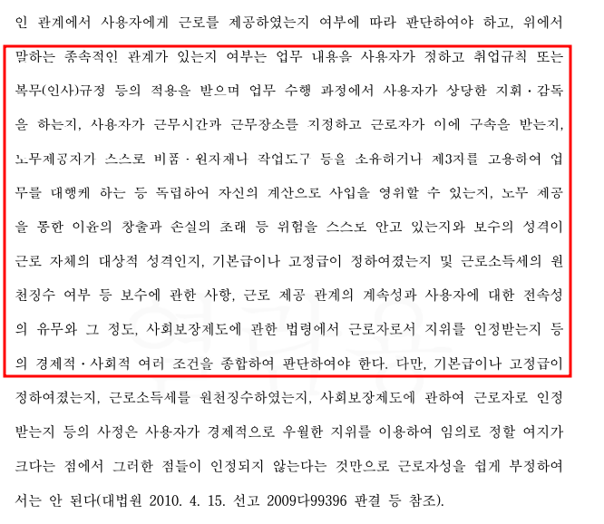 근로자성을 인정 받을 수 있게 되었습니다.