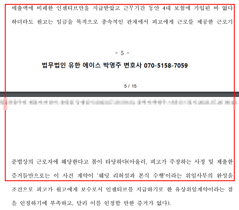 발생하기 때문에 이런 경우는 근로자성을 인정받기가 더 쉽습니다.