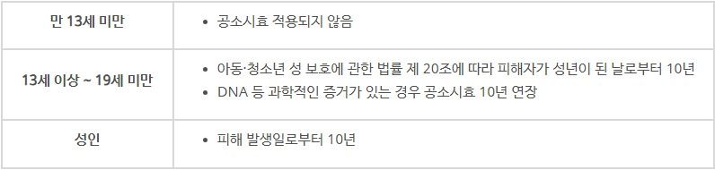 피해자의 연령에 따라 공소시효는 달라집니다.