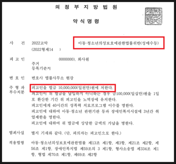 바로 결론부터 말씀드리자면, 아청법 처벌을 약식 벌금형으로 끝내기 위해선 변호사 선임을 하셔야 합니다.