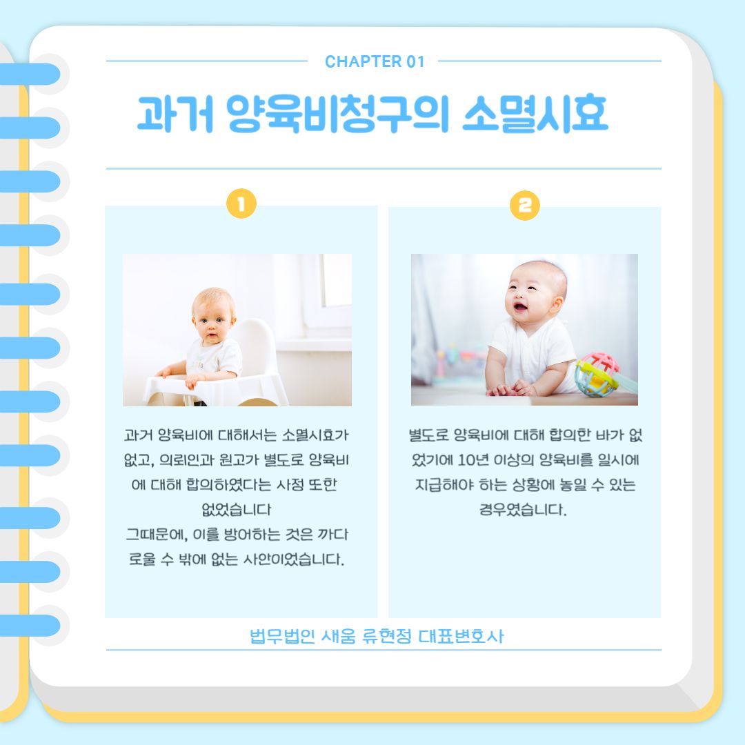 양육비는 자녀를 양육하는 데 필요한 비용으로, 비양육자인 부모는 양육자인 부모에게 양육비를 지급하여야 합니다. 양육비는 장래의 양육비뿐 아니라 과거의 양육비 또한 청구할 수가 있는데요. 부모의 자녀양육의무는 특별한 사정이 없는 한 자녀의 출생과 동시에 발생하는 것이므로 과거의 양육비에 대해서도 상대방이 분담하는 것이 맞다고 인정될 경우에는 과거의 양육비에 대해서도 상환을 청구할 수 있습니다. 대법원에서는 과거 양육비에 대해 소멸시효가 없다는 판결을 내렸기 때문에, 과거 양육비청구소송의 피고가 되어 갑작스럽게 많은 금액을 부담하게 된다면 당황스러울 수밖에 없습니다.