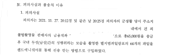 성소수자 A씨는 2021. 11. 27. 20:12경과 20:25경에 총 2회에 걸쳐 합계 65,000원을 지불하고 B씨로부터 샌드애니웨어를 통해 총 64개의 남성(동성)간의 성행위 모습을 촬영한 음란물을 구매하였습니다.
