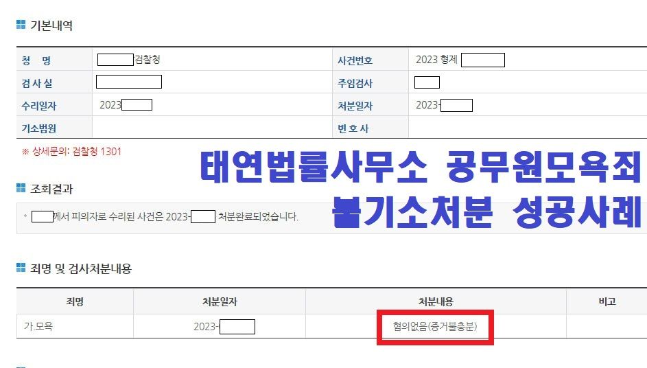 태연법률사무소는 수많은 공무원분들의 공무원모욕죄 사건을 진행하여 모욕죄 무죄, 모욕죄불기소처분을 수령한 사례를 보유하고 있으며 공무원의 신분으로서 공무원전과, 공무원형사처벌이 내려지는 경우를 반드시 피해야할 의뢰인의 사안에서 도움을 드리고 있습니다.