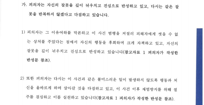 [변호인이 실제 제출한 의견서 중 일부]